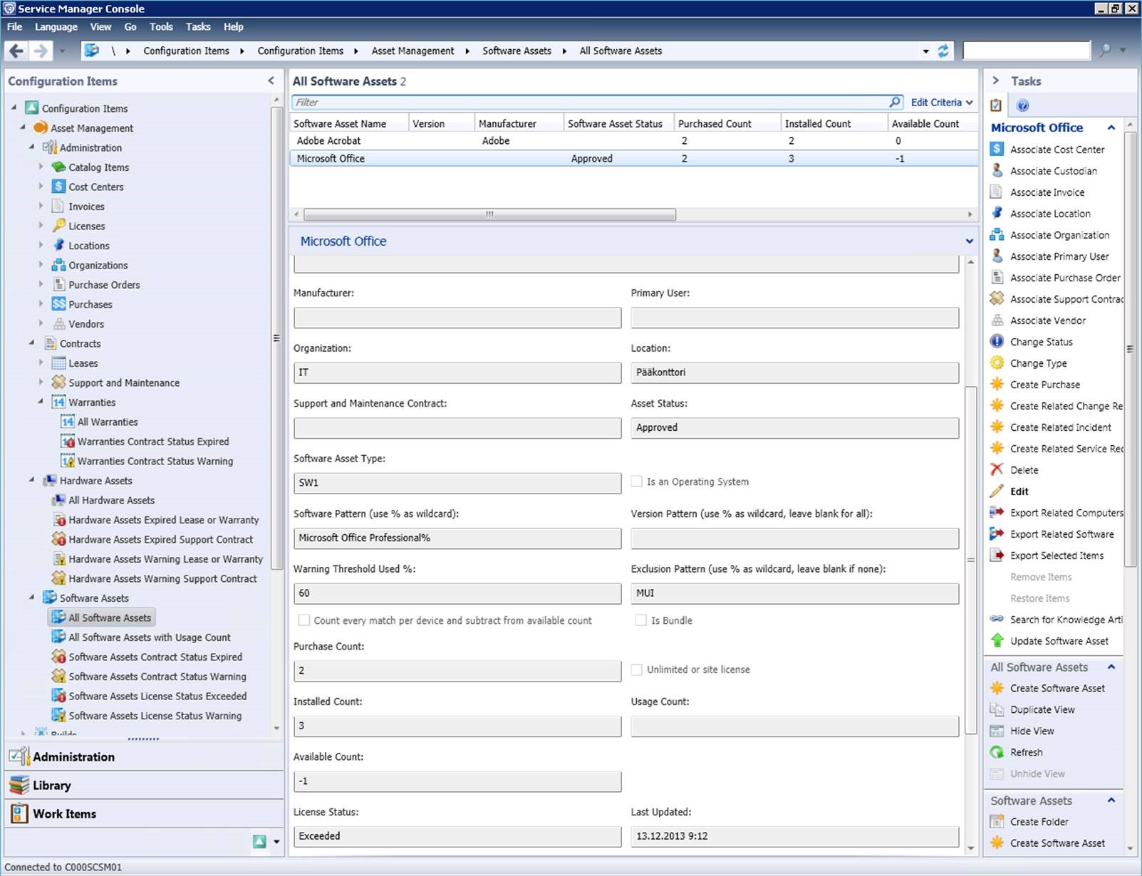 Microsoft System Center Service Manager is a powerful and clever ITSM Service Management tool for incident management, problem resolution and for change and release control. It also has a self-service portal as well as automation and orchestration capabilities. Microsoft System Center Service Manager fully integrates to other System Center systems management tools such as System Center Configuration Manager for managing devices, System Center Operations Manager to monitor servers and services and System Center Orchestrator to implement automation workflows that can be integrated to self-service portal’s service requests.